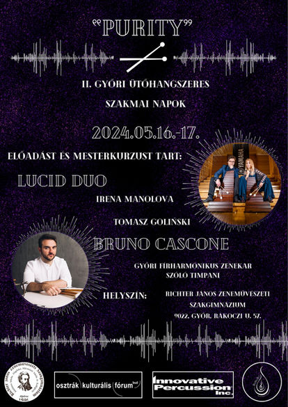 A koncert első felében lehetőséget kapnak a nagy közönség előtt való bemutatkozásra a IV. Győri Ütőhangszeres Szakmai Napok kurzusain résztvevő kamara csoportok és szóló hangszeres növendékek is. Jöjjenek, hallgassák meg ezt a bombasztikusnak ígérkező igazi ütőhangszeres koncertet!